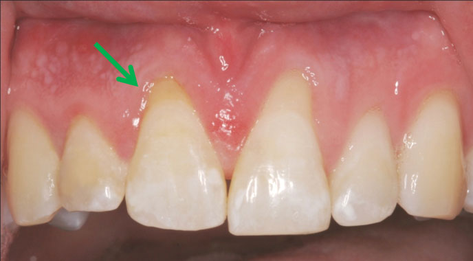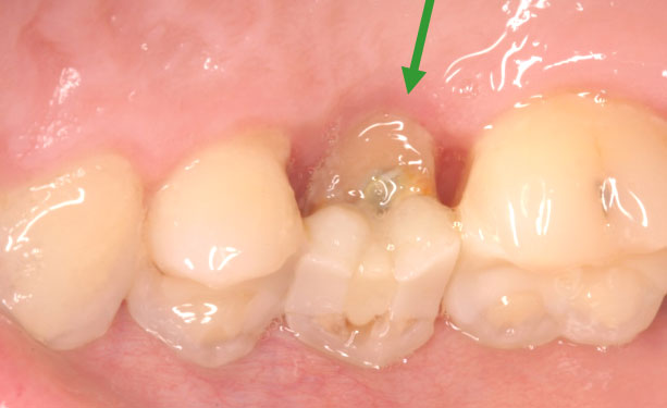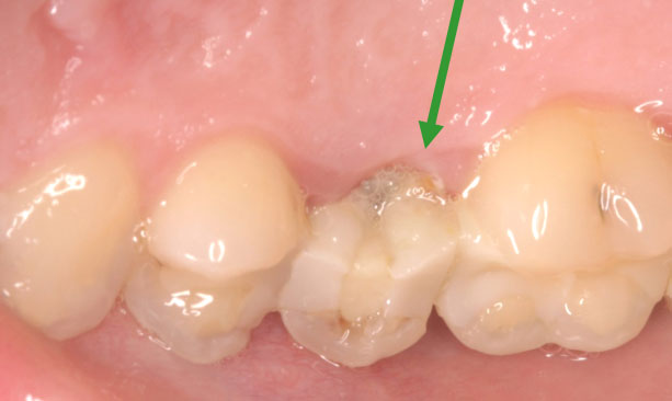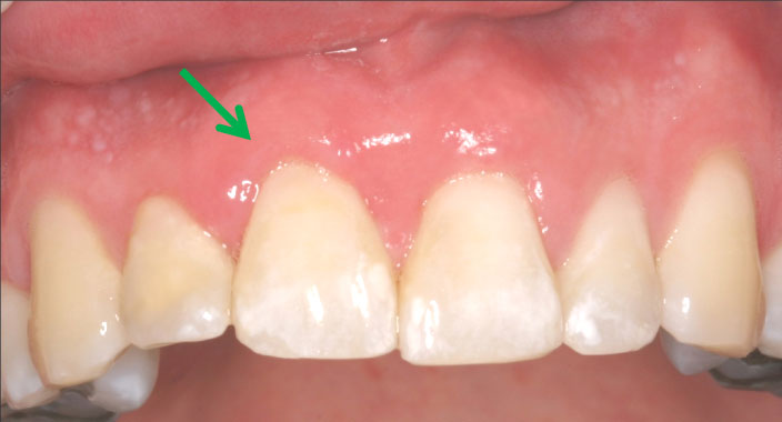 This is the body’s natural reaction to restorative materials that are placed too far below the gum line. This type of inflammation is causing bone loss that will eventually lead to severe recession.
