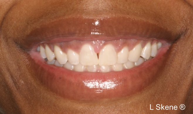 After crown lengthening her teeth are exposed revealing a brilliant smile.